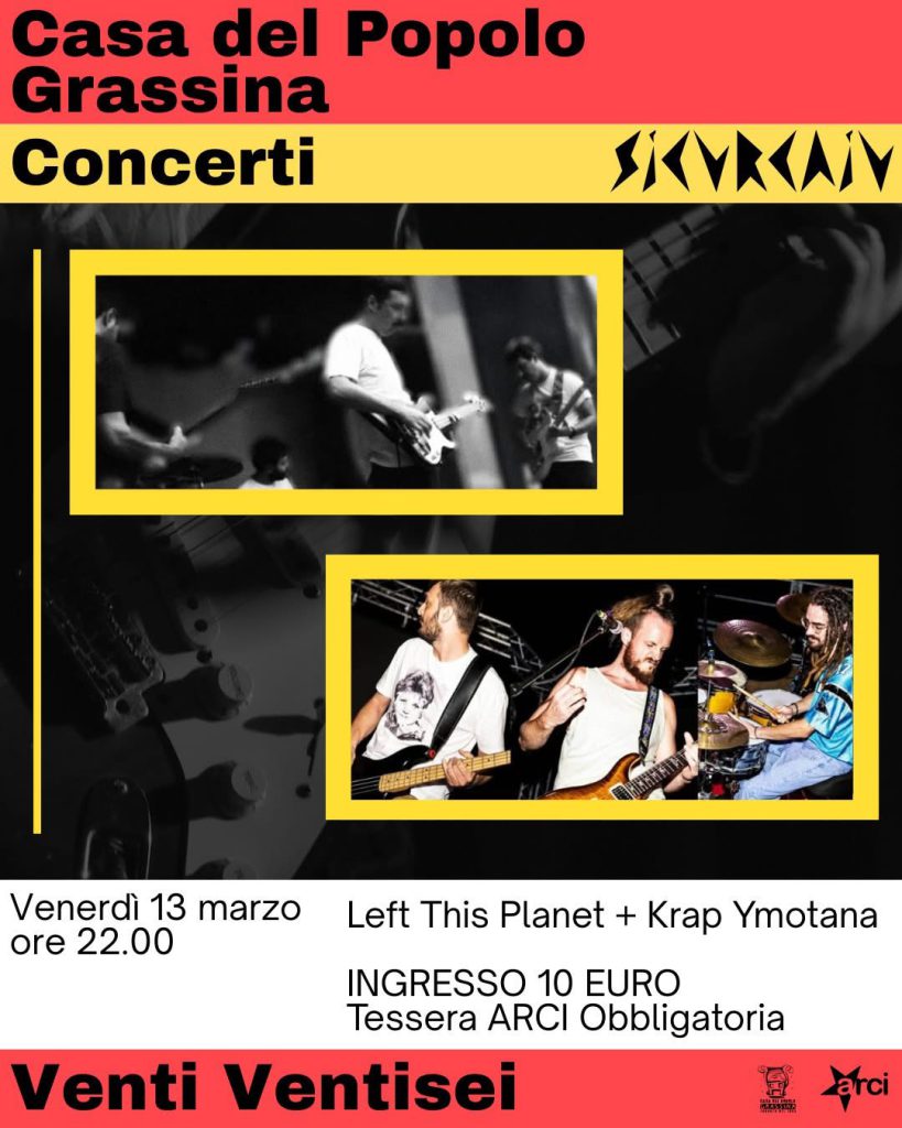 Venerdì 13 marzo: left this planet + krap ymotana 20 Febbraio 2026 cdpadri ARCI, Attività Cdp.Grassina, Concerti, Live Music, Musica