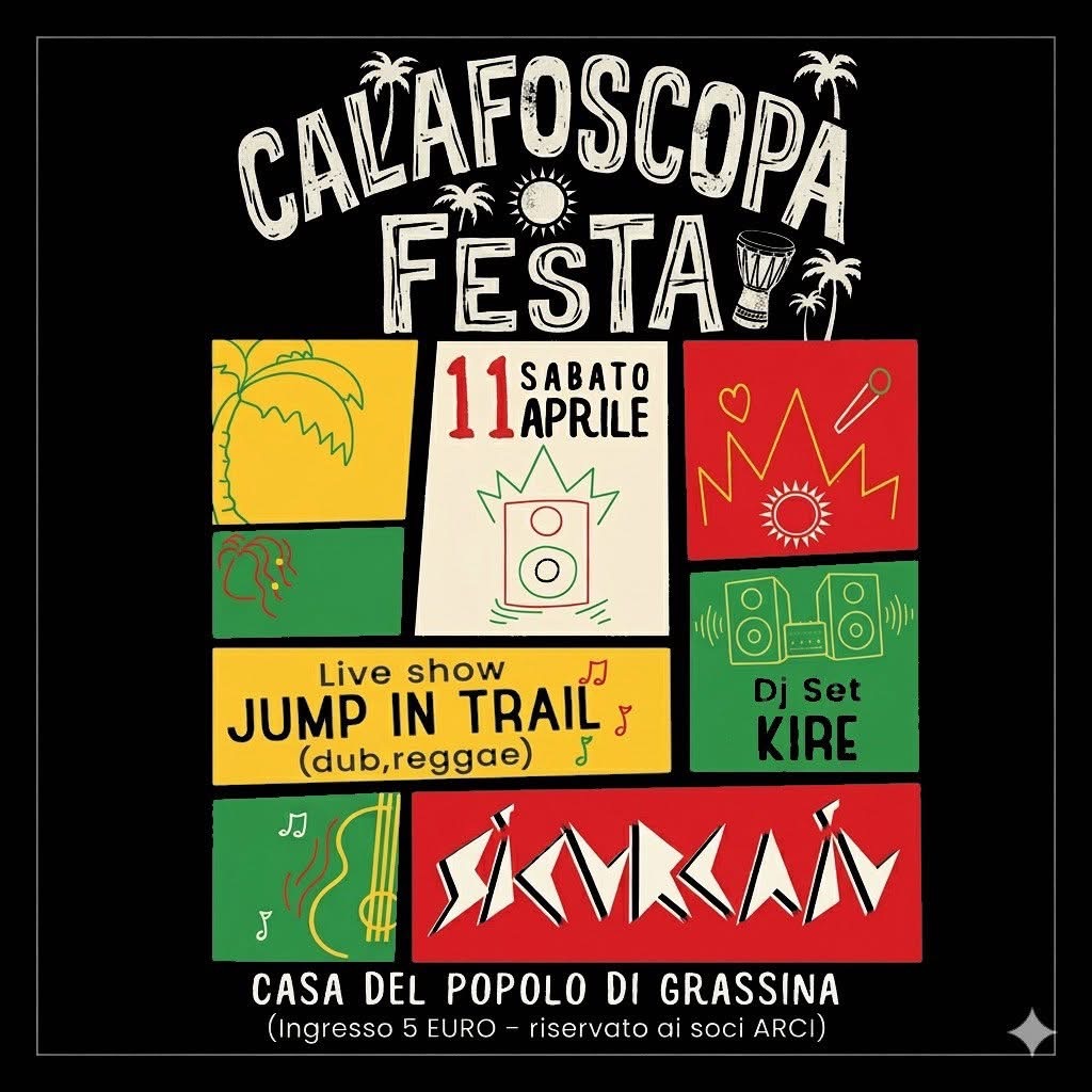 Sabato 11 aprile: calafoscopa festa 1 Aprile 2026 cdpadri Attività Cdp.Grassina, CALAfoSCOPA, Calafoscopa Party, Concerti, Dj Set Kire, Live Music, Musica, Musica Reggae, Sicurcaiv